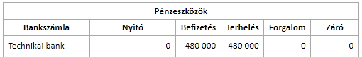 A technikai tételek egyenlege mindig 0, ami könnyen ellenőrizhetővé teszi a könyvelést.