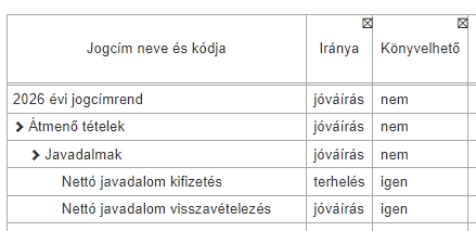 - a könyvelésre használt jogcímek